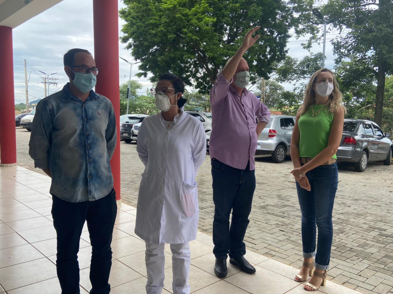 O Prefeito Henrique Rossi Wolf acompanhado da Diretora de Saúde Sheila de Oliveira Faria e do Diretor de Governo Administração e Finanças Carlos Cadan, acompanhou a entrega do material, que ficará armazenado na Diretoria de Saúde no Prédio dos Capuchinhos.