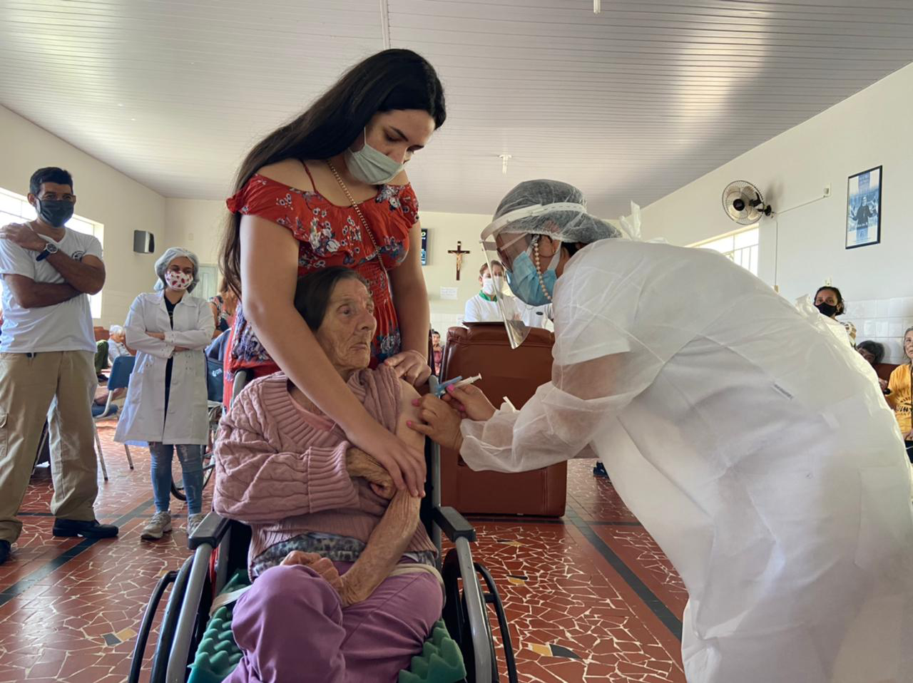 IDOSOS DO ASILO SÃO VICENTE DE PAULO RECEBEM A VACINA DE PREVENÇÃO DA COVID 19