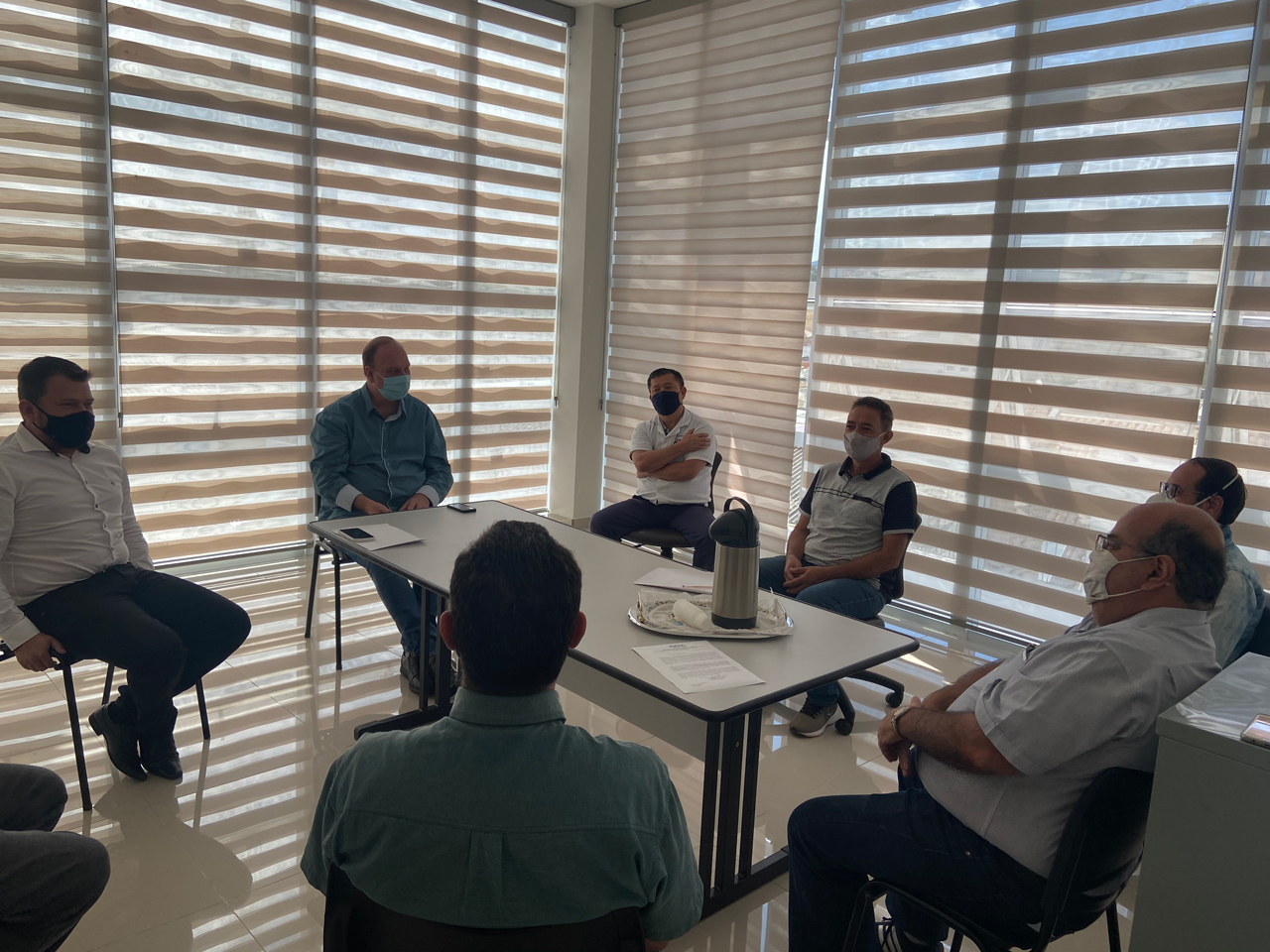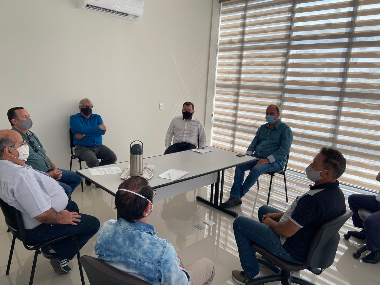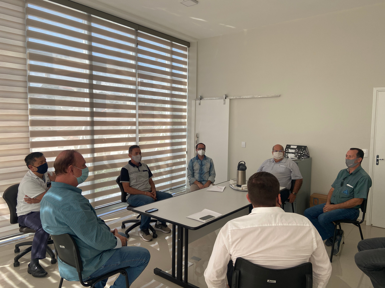 Estiveram reunidos nessa quarta feira (07), o Prefeito Henrique Rossi Wolf acompanhado do Diretor de Governo Administração e Finanças Carlos Antônio de Magalhães Cadan e Paulo Henrique de Melo Procurador Geral do Município juntamente com a equipe da Associação Comercial Industrial e Agrícola de Ouro Fino: Presidente José Peres Romero, Vice-Presidente Paulo Afonso Pereira e diretores Marcos Gomes Rodrigues, Edilson Vilela e Mauro Miúra. O encontro teve como objetivo discutir a situação da “Onda Roxa” e a reabertura do comércio local.