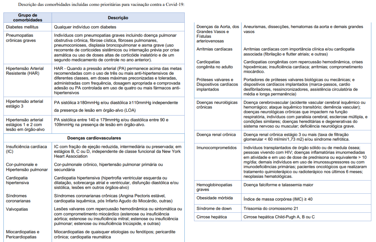 A lista de comorbidades também estará disponível no link abaixo.