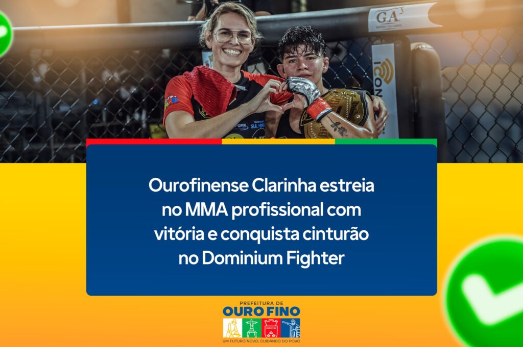 Esporte, Notícias Ourofinense Clarinha estreia no MMA profissional com vitória e conquista cinturão no Dominium Fighter 07/04/2025 Continue reading