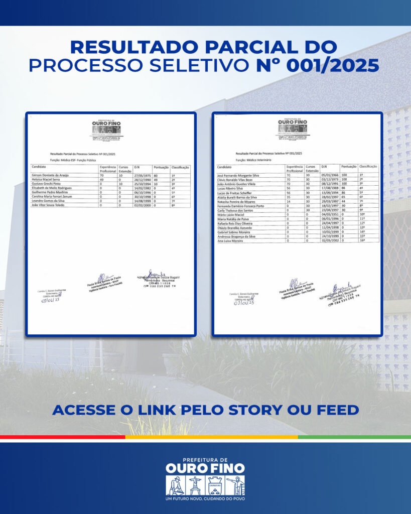Administrativo, Concurso, Notícias Resultado parcial do processo seletivo Nº 001/2025 05/06/2025 Continue reading