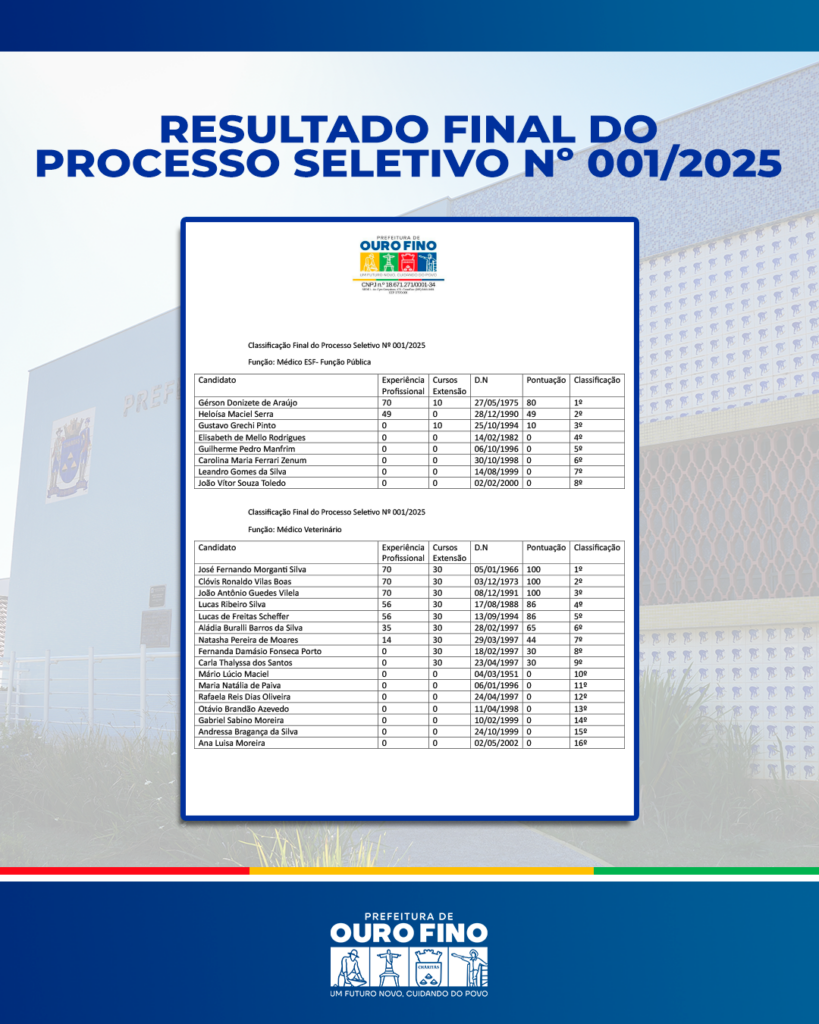 Administrativo, Notícias Resultado final do processo seletivo Nº 001/2025 10/06/2025 Continue reading