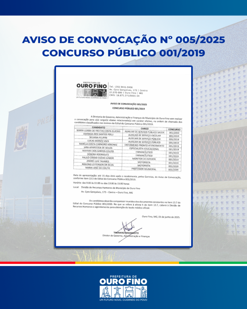 Administrativo, Concurso, Notícias Aviso de Convocação – Concurso Público 001/2019 05/06/2025 Continue reading