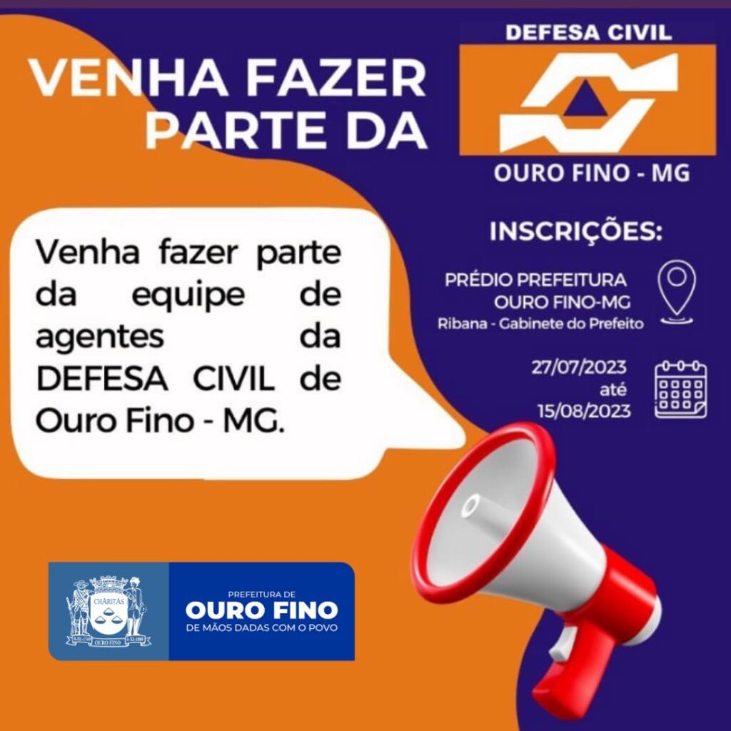 Administrativo, Notícias VENHA COMPOR NOSSO NOVO QUADRO DE AGENTES DE DEFESA CIVIL MUNICIPAL VOLUNTÁRIO 31/07/2023 Continue reading