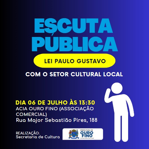 Administrativo, Notícias PREFEITURA DE OURO FINO VAI PROMOVER ESCUTA PÚBLICA SOBRE LEI PAULO GUSTAVO 29/06/2023 Continue reading