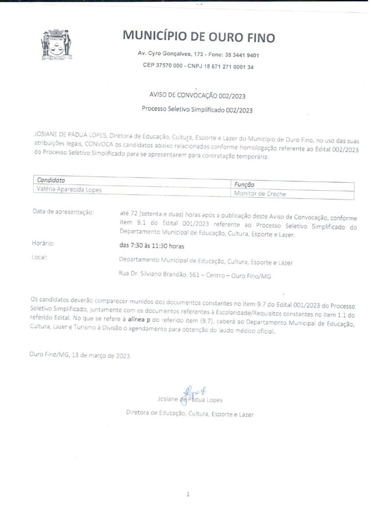 Administrativo, Concurso, Notícias Aviso de Convocação – Concurso Público 001/2019 05/06/2025 Continue reading