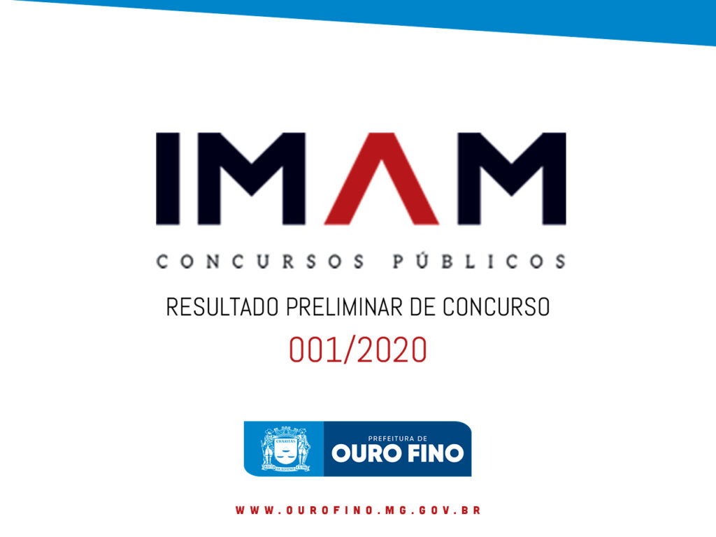 PREFEITURA DE OURO FINO E IMAM DIVULGAM RESULTADO PRELIMINAR DE CONCURSO 001/2020