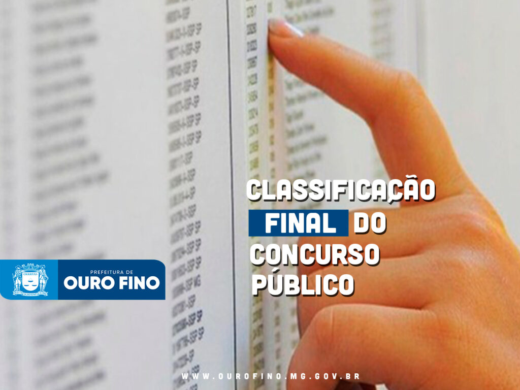 PREFEITURA DE OURO FINO E IMAM DIVULGA A CLASSIFICAÇÃO FINAL DO CONCURSO