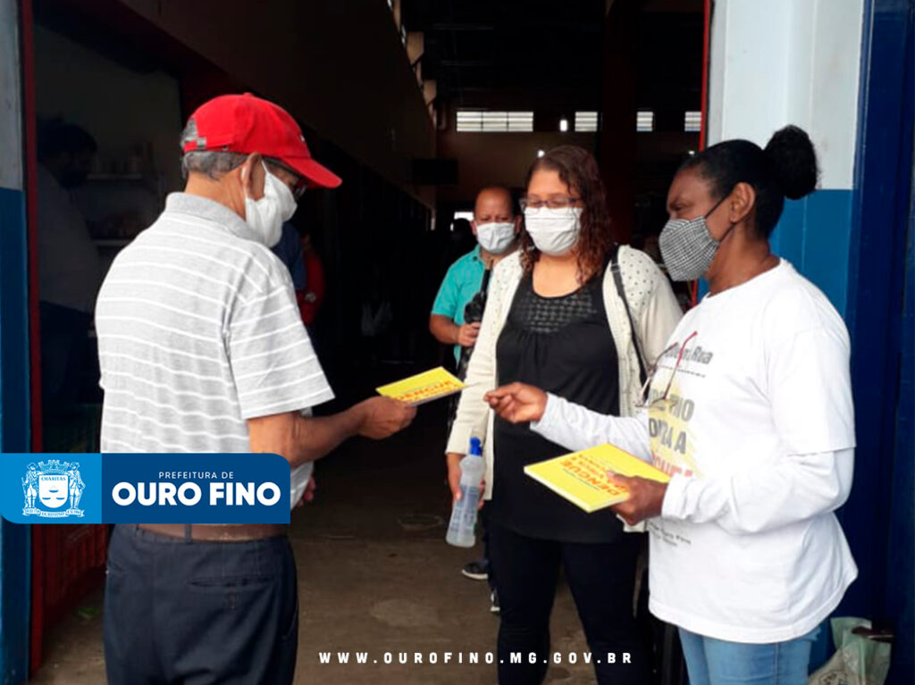 Neste sábado (06) agentes de combate a endemias do município de Ouro Fino promoveram um trabalho de conscientização no Mercado Municipal abordando a população para os cuidados referentes a transmissão da Covid-19, como o uso correto de máscaras, higienização das mãos com álcool em gel, água e sabão e a importância do distanciamento social.