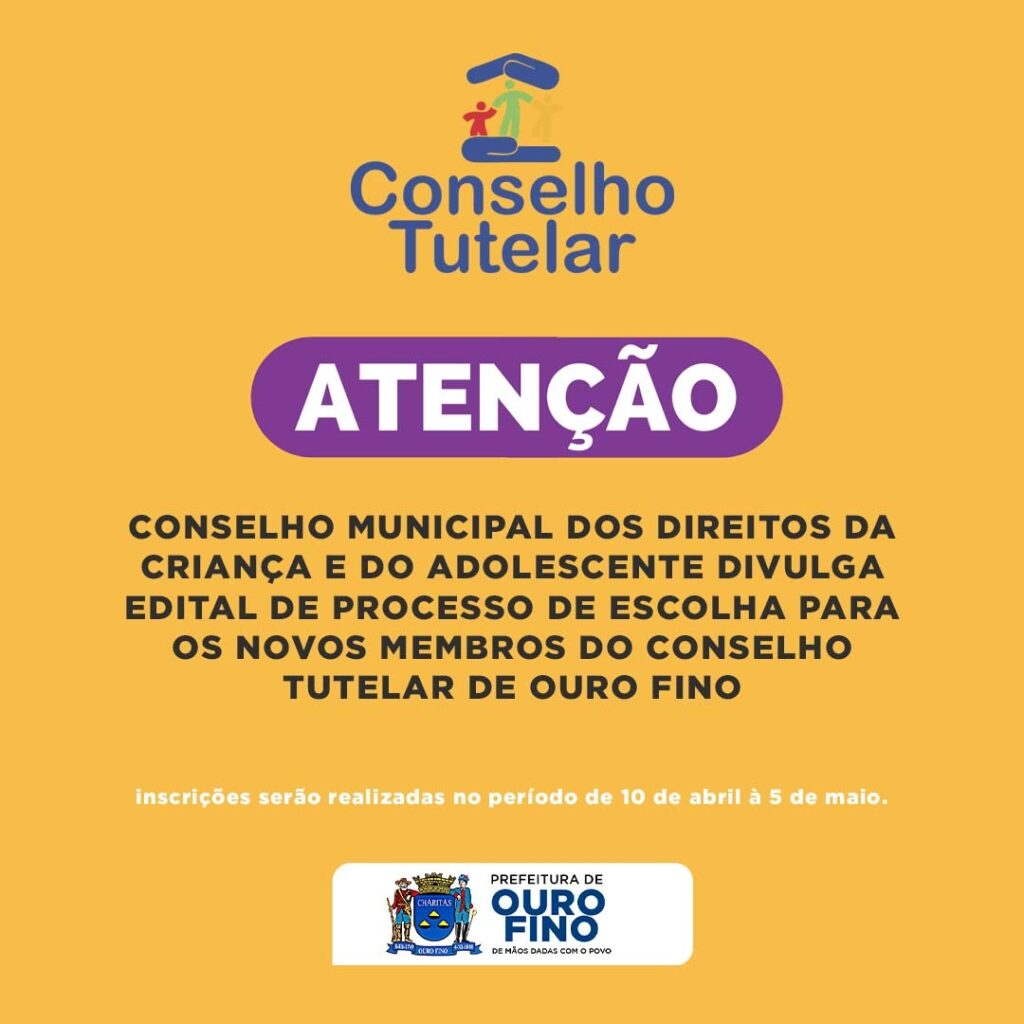 Notícias CONSELHO MUNICIPAL DOS DIREITOS DA CRIANÇA DE ADOLESCENTE DIVULGA EDITAL DE PROCESSO DE ESCOLHA PARA OS NOVOS MEMBROS DO CONSELHO TUTELAR DE OURO FINO 31/03/2023 Continue reading