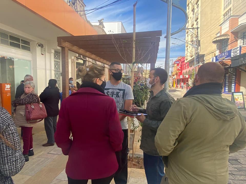 Na tarde desta quarta-feira (30) durante fiscalização, os fiscais se depararam com uma aglomeração na fila da agência bancária Itaú.
