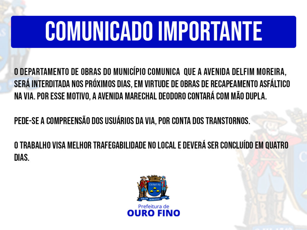 Notícias COMUNICADO IMPORTANTE 17/09/2020 O trabalho visa a melhor trafegabilidade no local e deverá ser concluído em quatro dias. Continue reading