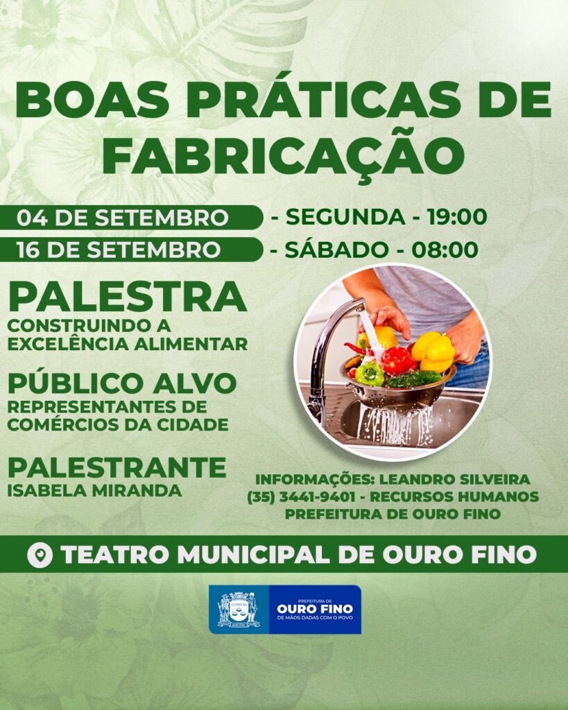 Notícias A Prefeitura de Ouro Fino, em parceria com empresa no setor de Engenharia de Alimentos e Nutrição, realizará uma palestra para os representantes de comércios da cidade, sejam de alimentos líquidos ou sólidos. 28/08/2023 Continue reading